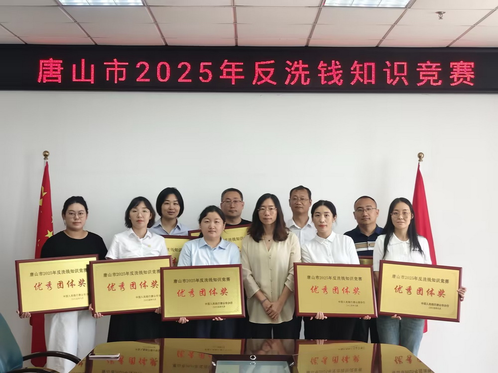 8月14日,人保财险唐山市分公司荣获唐山市人民银行组织召开的反洗钱知识竞赛优秀团队奖。