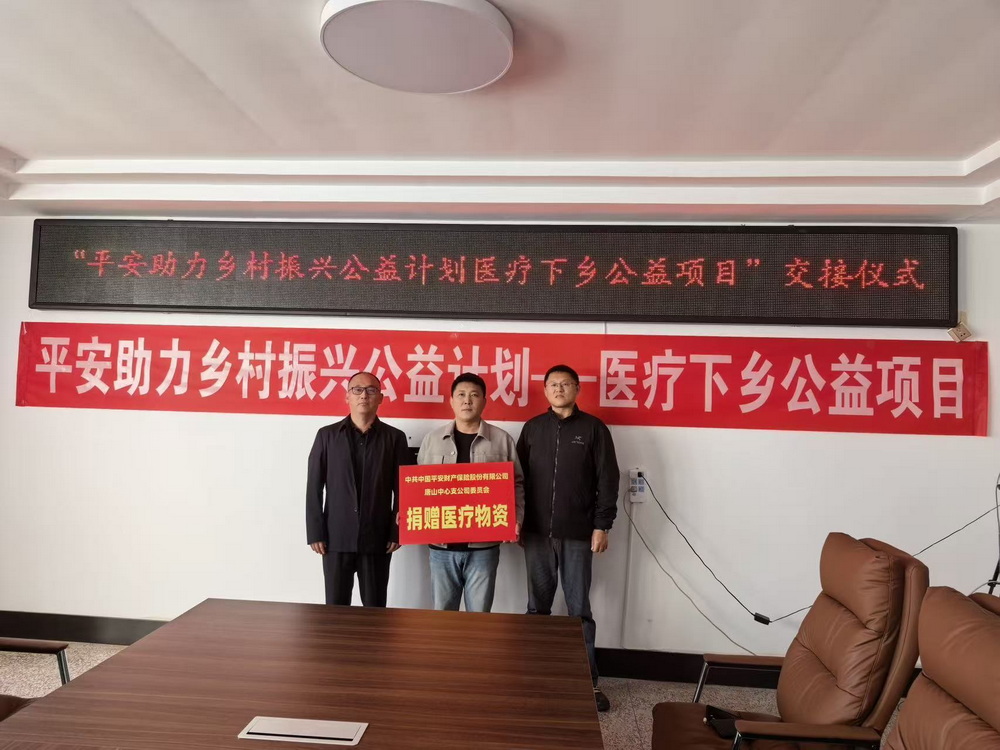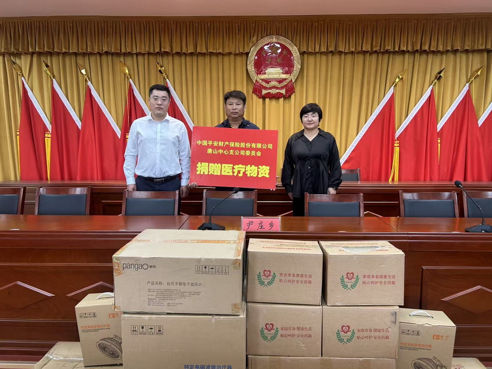 丰润区火石营镇镇长舒永、平安产险丰润支公司党支部书记刘瑾带队出席本次活动。活动中,平安产险唐山中心支公司向火石营镇政府捐赠了包括血压计、血糖仪、急救包等在内的多套基础医疗设备和便携式小药箱。这批物资将有效补充镇卫生所的储备,为火石营镇各村村民们的日常健康防护和基础医疗需求提供有力保障。