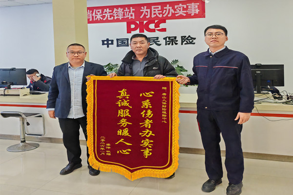 近日,人保财险唐山市分公司收到一份特殊的“新年礼物”——事故三者方董女士家属专程送来的锦旗,以此感谢人保财险唐山市分公司贴心高效的服务。
