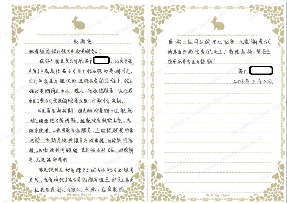 作为深耕保险行业多年的企业,公司始终将客户需求放在首位,不断优化理赔服务体系,通过数字化升级实现“线上报案、智能审核、快速赔付”的全流程高效服务,同时坚持“以人为本”的服务理念,让每一位客户在理赔过程中都能感受到专业、透明、暖心的服务。此次收到客户表扬信,既是对理赔团队工作的肯定,更是对我司服务理念的印证。